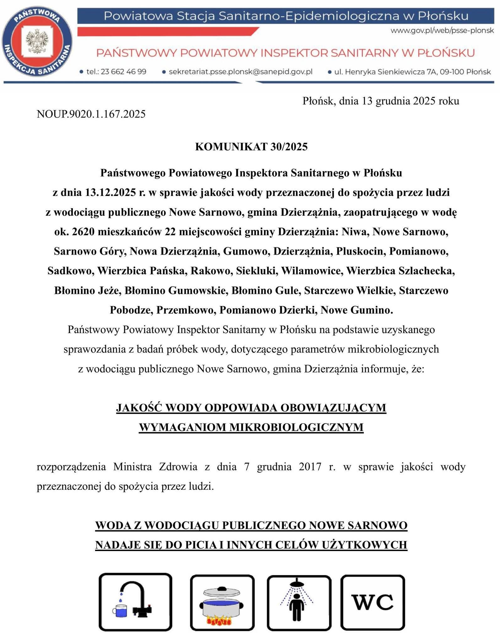WODA Z WODOCIĄGU PUBLICZNEGO NOWE SARNOWO NADAJE SIĘ DO PICIA I INNYCH CELÓW UŻYTKOWYCH !!!!